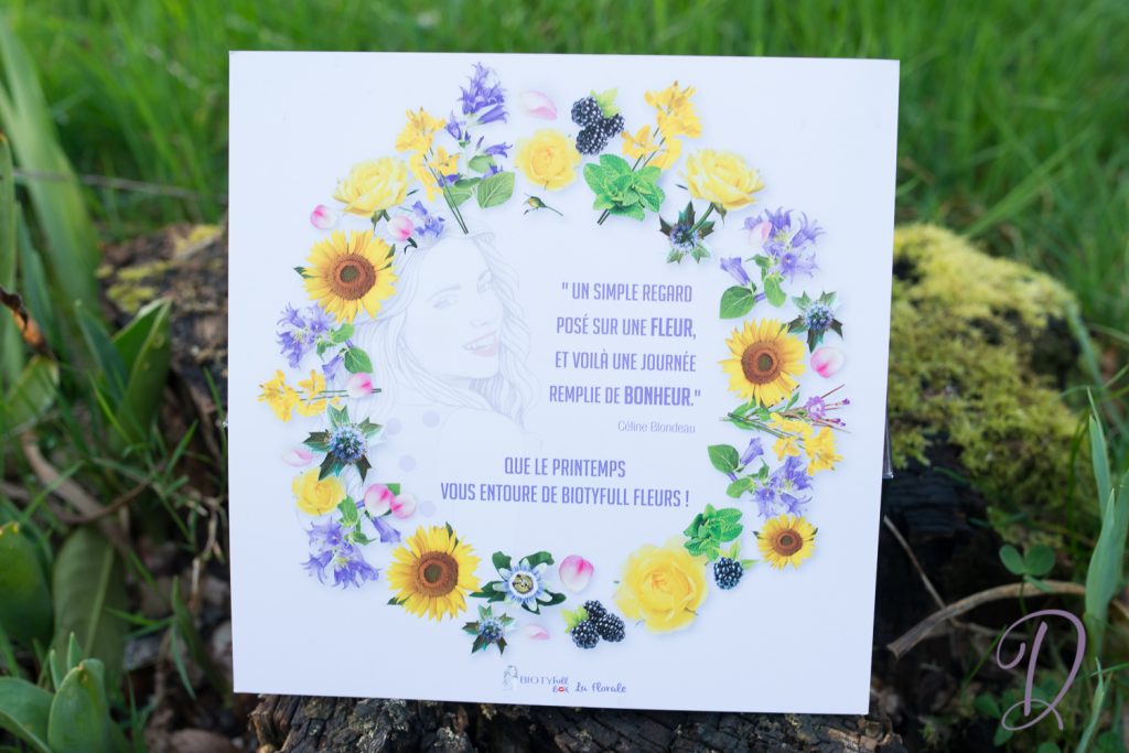 Elle contient aussi une jolie carte avec une belle citation de Céline Blondeau : « Un simple regard posé sur une fleur, et voilà une journée remplie de bonheur. »