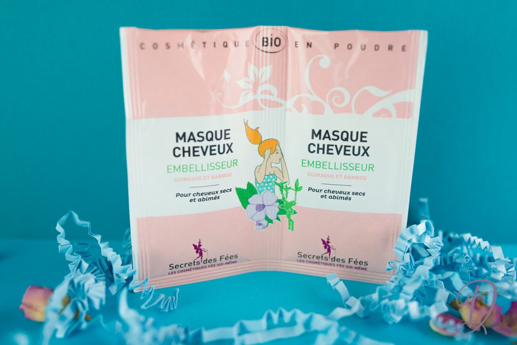 Secret des Fées est une marque bio et Slow Cosmétique qui propose des cosmétiques bio en poudre à faire soi-même. Je trouve ça vraiment sympa, d’autant plus que les cosmétiques home made ont le vent en poupe en ce moment. Encore une découverte ! C’est bien la première fois que je vois un masque sous forme de poudre à laquelle il faut ajouter de l’eau. Il est garanti sans conservateur et sans allergène. Il est composé d’extraits de guimauve et de bambou, qui agissent conjointement pour nourrir, réparer et protéger les cheveux, ainsi que d’aloe vera, aux vertus hydratantes et apaisantes. Le masque cheveux embellisseur est un masque avant shampoing ; il va redonner brillance et force à nos cheveux. L’extrait de guimauve et de bambou nourrit, répare et protège les cheveux, et l’aloe vera hydrate et apaise.