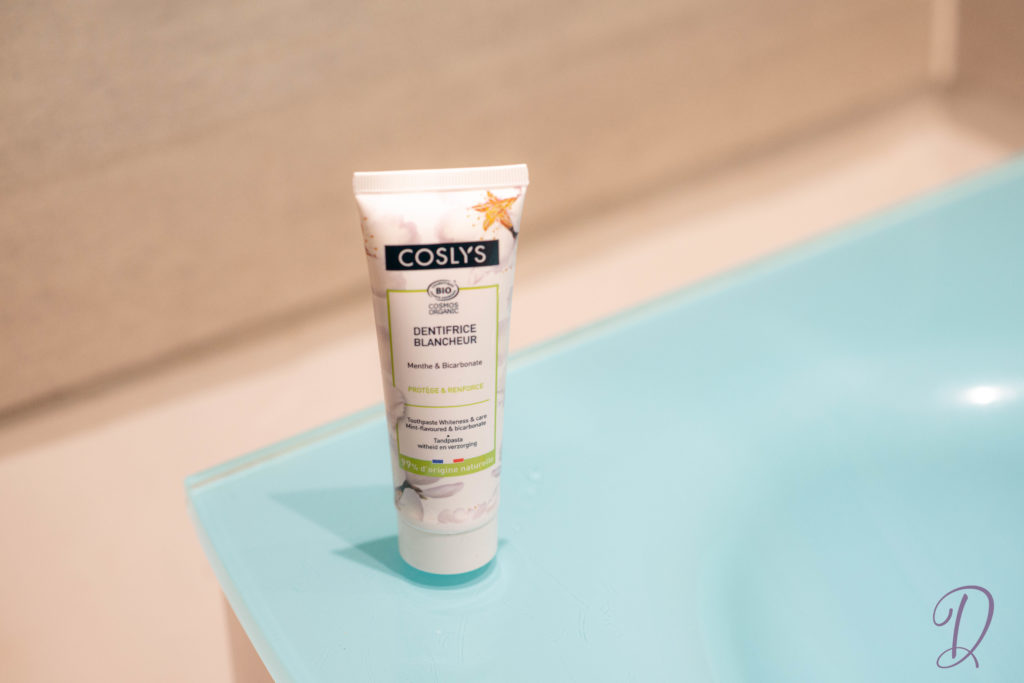 Le dentifrice blancheur Coslys favorise le polissage de l’émail en douceur tout en renforçant l’émail des dents. Il préserve ainsi la blancheur des dents. Il est sans dioxyde de titane, sans silice et sans fluor.