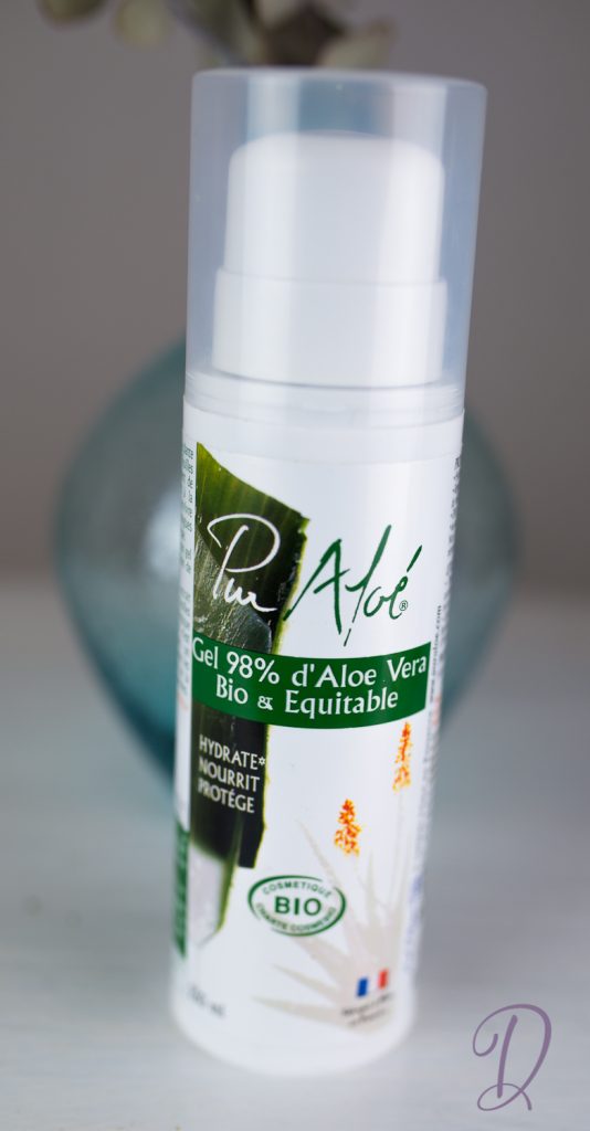 2) J’applique un gel d’aloé vera. Vous le connaissez, c’est le gel d’aloé vera de Pur’Aloé. Il va permettre de maintenir l’hydratation de ma peau. Il est connu pour ses vertus apaisantes, il calme également les irritations de ma peau.