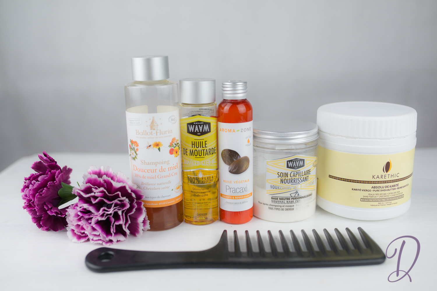 Encore et toujours les masques aux poudres ayurvédiques. Pour mes soins nourrissants et hydratants, le beurre de karité. Pourquoi ? Il est très utilisé au Sénégal et j’ai gardé l’habitude de l’employer dans tous mes soins capillaires et corporels. Et l’huile de coco comme agent hydratant.