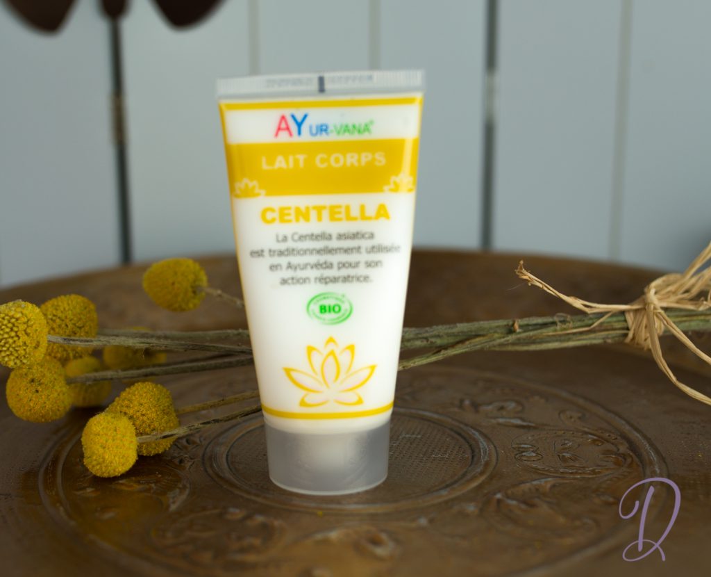 Ayur-vana est une marque française spécialisée dans la conception de produits de santé et de beauté à base de plantes indiennes bio. La gamme a été conçue en 2011 selon les principes de l’ayurvéda. Ce lait pour le corps contient de la Centella, une plante appréciée pour ses vertus réparatrices et cicatrisantes, qui apaise les peaux sèches et sensibles. Ce lait, qui revitalise l’épiderme et rend la peau souple, contient également de l’eau florale d’hamamélis, de l’eau florale de bleuet et de l’huile végétale de noyau d’abricot, de graines de sésame et d’amande douce. 98,7 % des ingrédients sont d’origine naturelle et 26,4 % sont issus de l’agriculture biologique. Il est certifié Cosmébio.
