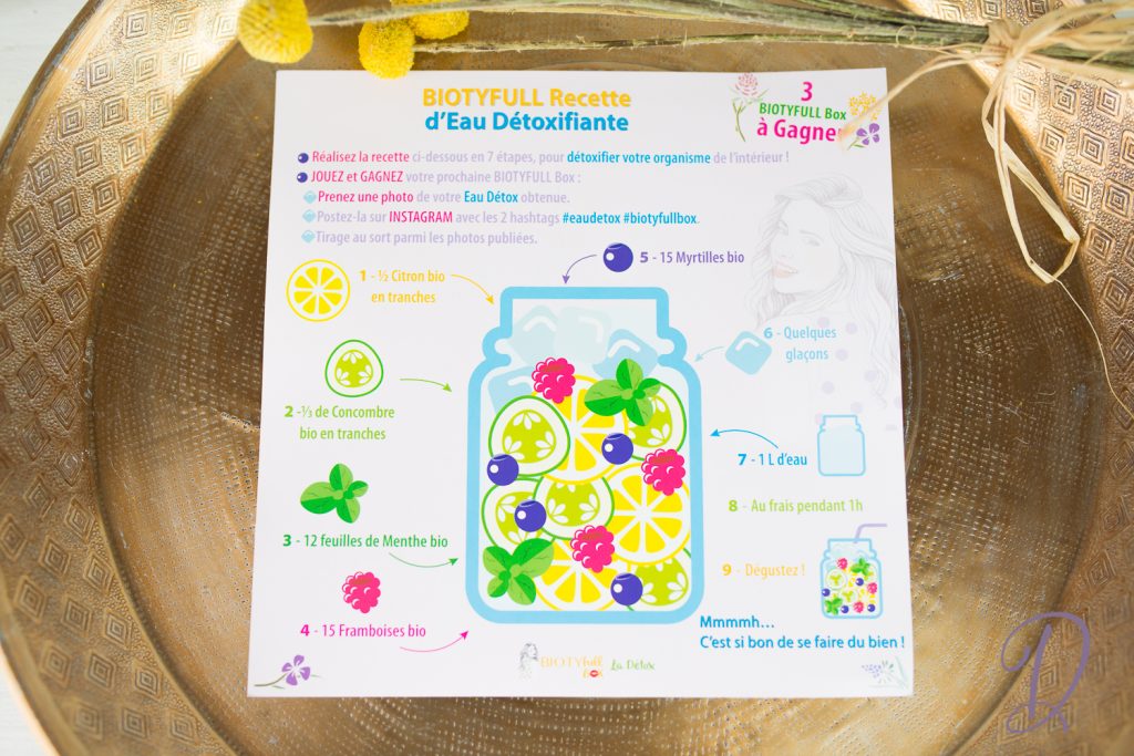Coucou tout le monde, je suis ravie de vous retrouver pour vous donner mon avis sur la Biotyfull box de septembre ! Le thème de cette nouvelle édition est la détox ; nous retrouvons dans cette box une recette d’eau détoxifiante et gourmande.