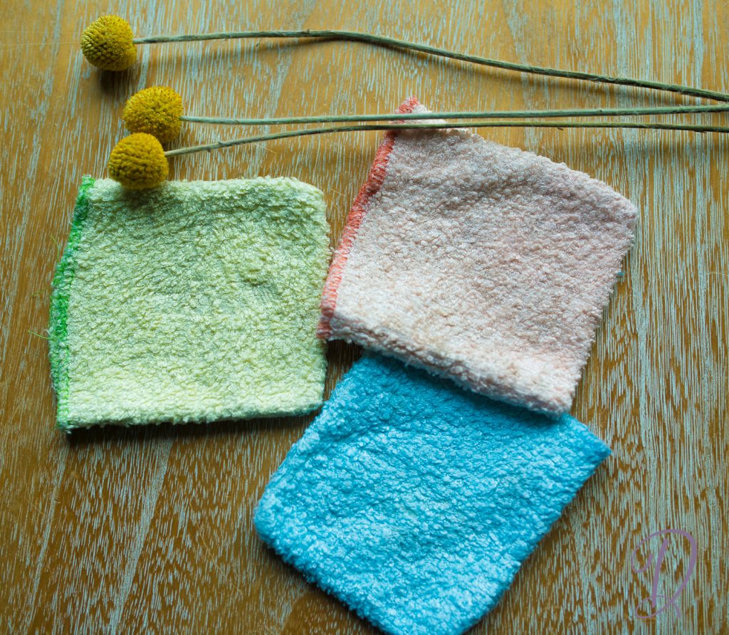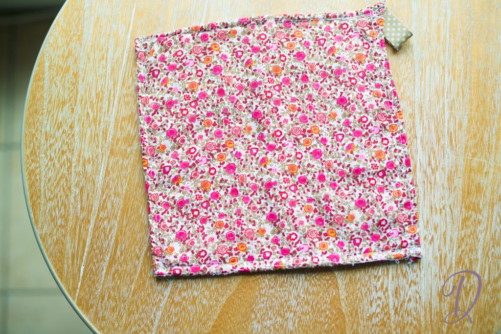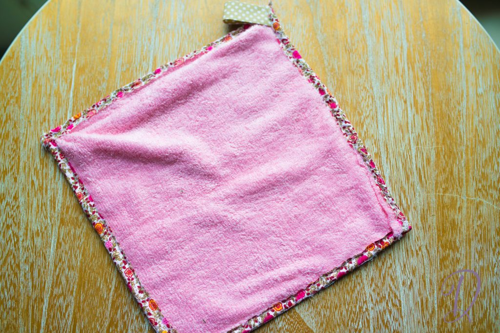 J’ai confectionné mes propres débarbouillettes en tissu Liberty, à sa demande bien sûr.