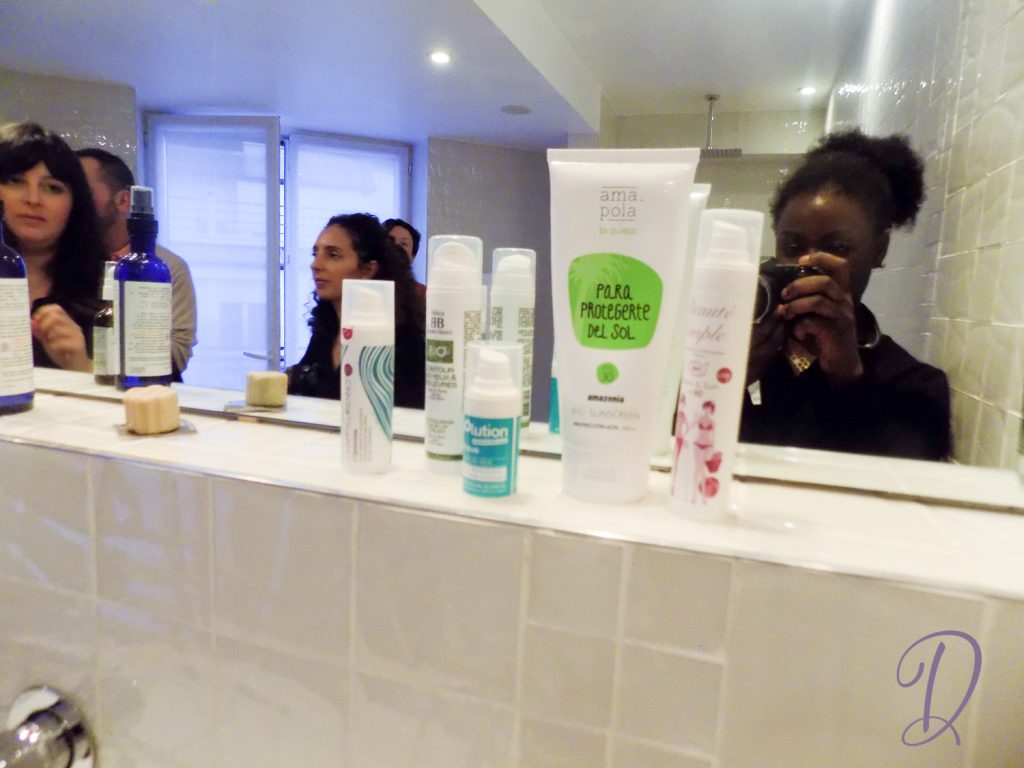Il y a 15 jours, les éditions Leduc.s et l’association Slow Cosmétique m’ont invitée dans un appartement mystère avec d’autres blogueuses. Je suis arrivée au lieu du rendez-vous avec une demi-heure d’avance, de peur de ne pas trouver. C’était dans un hôtel sombre, j’étais complètement perdue, paniquée. J’ai revérifié mon invitation et c’était bien l’adresse. Une âme charitable est venue à ma rescousse et m’a accompagnée à l’appartement. J’ai été heureuse de retrouver Marie, du blog Maman Youpie, mais aussi Constance, Julien Kaibeck, Marie La Forêt et Karine, qui a animé un atelier, et d’autres blogueuses encore.